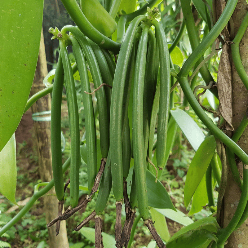 Notre vanille, se distingue par son arôme intense et complexe, avec des notes de caramel, de chocolat et de fleurs. De plus, elle a une texture souple et charnue, avec des gousses bien dodues et juteuses qui sont souvent plus longues et plus larges que les autres variétés de vanille hors Madagascar. Notre vanille, est reconnue pour sa teneur élevée en vanilline, le composé responsable de son parfum caractéristique et de sa saveur sucrée. En outre, la vanille de Madagascar est cultivée de manière traditionnelle, ce qui lui confère une qualité et un goût authentiques. De couleur brun foncé à noire.